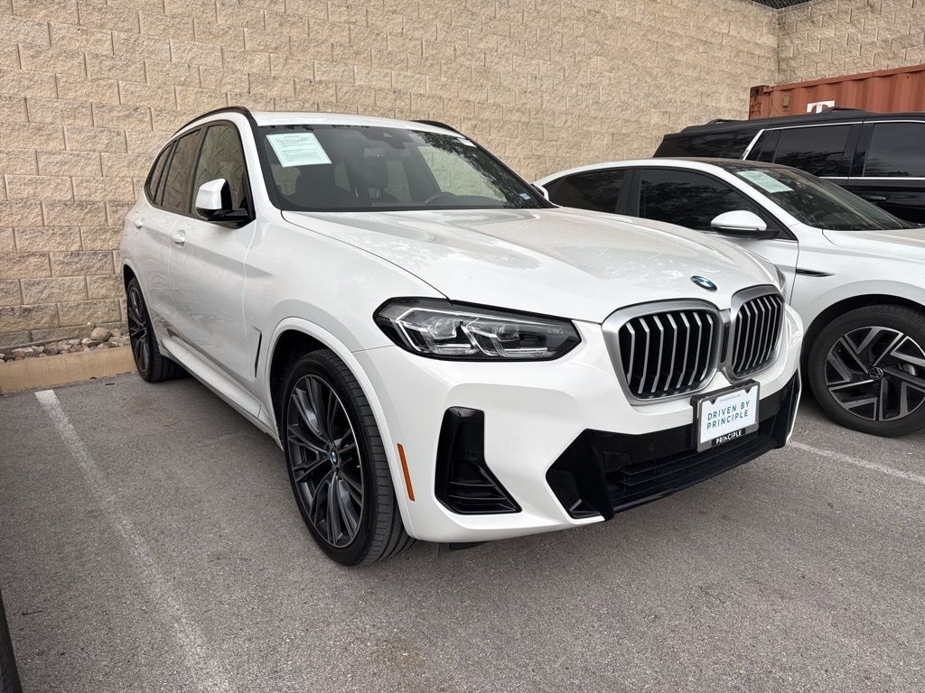 Certified. 2023 BMW X3 sDrive30i CARFAX One-Owner. Alpine White Recent Arrival! 8-Speed Automatic Sport, Aerodynamic Kit, Connected Package Pro, Convenience Package, Driver Lumbar Support, M Sport Package, M Sport Package (337), M Steering Wheel, Navigation, Navigation System, Panoramic Moonroof, Roof Rails in High-Gloss Shadowline, Shadowline Exterior Trim, Smoke Grey Aluminum Rhombicle Trim, Wheels: 19" x 7.5" M Y-Spoke Bi-Color (Style 887M), Without Exterior Lines Designation.