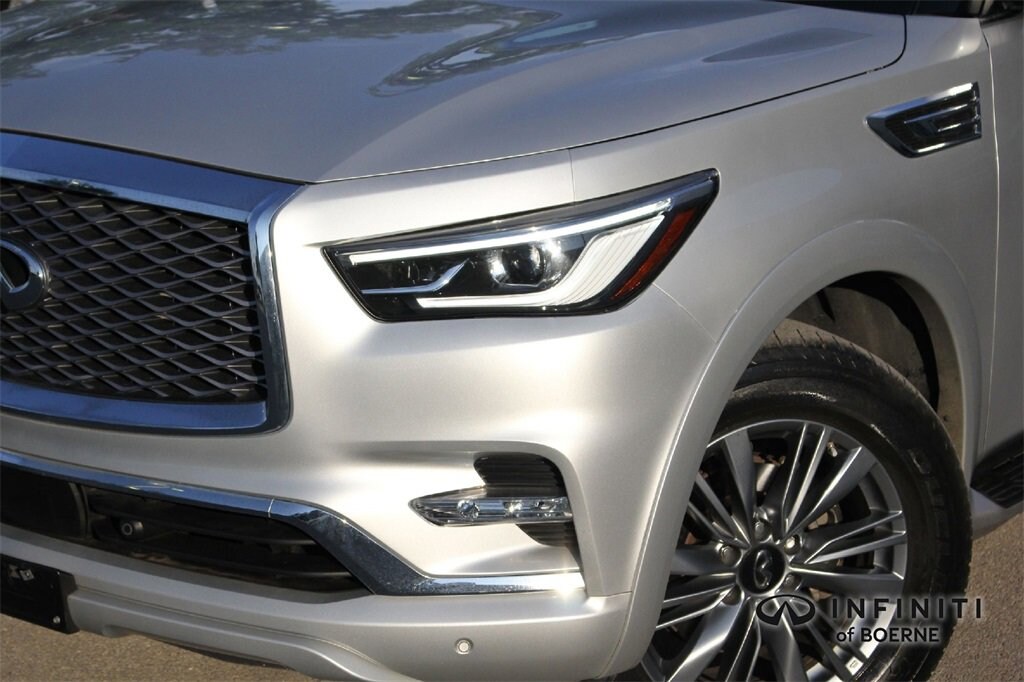 Liquid Platinum 2022 INFINITI QX80 LUXE Certified, Leather Interior, Heated Seats, Apple CarPlay/Android Auto, Reverse Camera, 3rd row seats: split-bench, Auto High-beam Headlights, Auto-dimming door mirrors, Front Bucket Seats, Fully automatic headlights, Power Liftgate, Power moonroof, Speed control.
