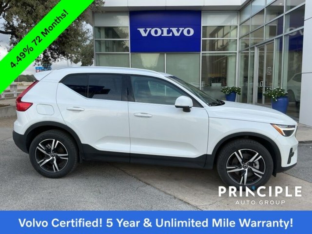 Discover exceptional luxury, safety, and value with this Certified Pre-Owned 2025 Volvo XC40 B5, now available at Principle Volvo Cars San Antonio. This sophisticated compact SUV blends Scandinavian design with confident performance, offering a turbocharged B5 mild-hybrid powertrain for responsive acceleration and outstanding efficiency. As a Volvo Factory Certified vehicle, it includes a remarkable 5 years of warranty coverage with Unlimited Miles, giving you unmatched peace of mind as you navigate the roads of San Antonio and beyond.