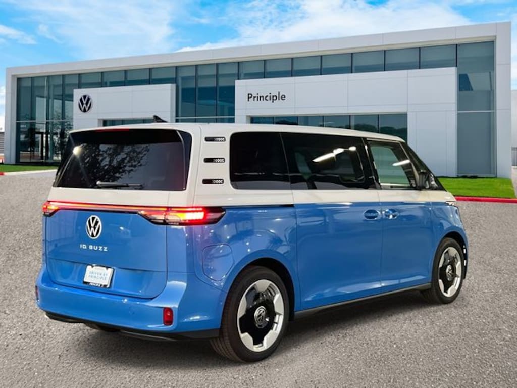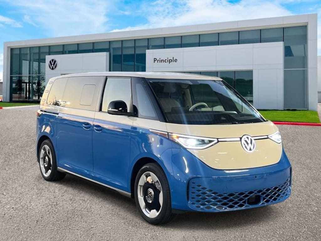 BLIND SPOT MONITORING, LANE DEPARTURE WARNING, VW CAR-NET, APP-CONNECT, APPLE CARPLAY, ADAPTIVE CRUISE CONTROL, LIGHT ASSIST, LANE ASSIST, FRONT ASSIST, REAR TRAFFIC ALERT, PEDESTRIAN MONITORING, aUTOMATIC POST-COLLISION BRAKING SYSTEM, 4 YEAR, 50,000 MILE LIMITED WARRANTY, CLIMATRONIC® DUAL ZONE AUTOMATIC CLIMATE CONTROL, ENGINE START-STOP SYSTEM, INTELLIGENT CRASH RESPONSE SYSTEM, APP-CONNECT SMARTPHONE INTEGRATION, VOLKSWAGEN PRE-PAID SCHEDULED MAINTENANCE CONTRACT W/ 30,000 MILE SERVICING, HILL HOLD CONTROL, ID. Buzz Pro S Plus, 4D Passenger Van, Electric Motor, Single-Speed Automatic, RWD, Cabana Blue, 14 Speakers, Auto High-beam Headlights, Auto-dimming Rear-View mirror, Brake assist, Delay-off headlights, Electronic Stability Control, Exterior Parking Camera Rear, Four wheel independent suspension, Front fog lights, Fully automatic headlights, harman/kardon® Speakers, Heads-Up Display, Heated & Actively Ventilated Front Seats, Heated rear seats, Heated steering wheel, Illuminated entry, Leather steering wheel, Memory seat, Navigation System, Outside temperature display, Panoramic Glass Roof, Perforated V-Tex Leatherette Seating Surfaces, Power Liftgate, Radio: Discover Pro Max w/Touchscreen Navigation, Rain sensing wipers, Rear reading lights, Rearview Mirror w/HomeLink Connect, Remote keyless entry, Roof Rack Base Carrier Bars (Set of 2), Speed-sensing steering, Steering wheel mounted audio controls, Telescoping steering wheel, Tilt steering wheel, Traction control, Variably intermittent wipers, VW Care, Wheels: 20" Two-Tone Disc Alloy. Price includes: $2500 - Retail Customer Bonus - EV . Exp. 01/05/2026